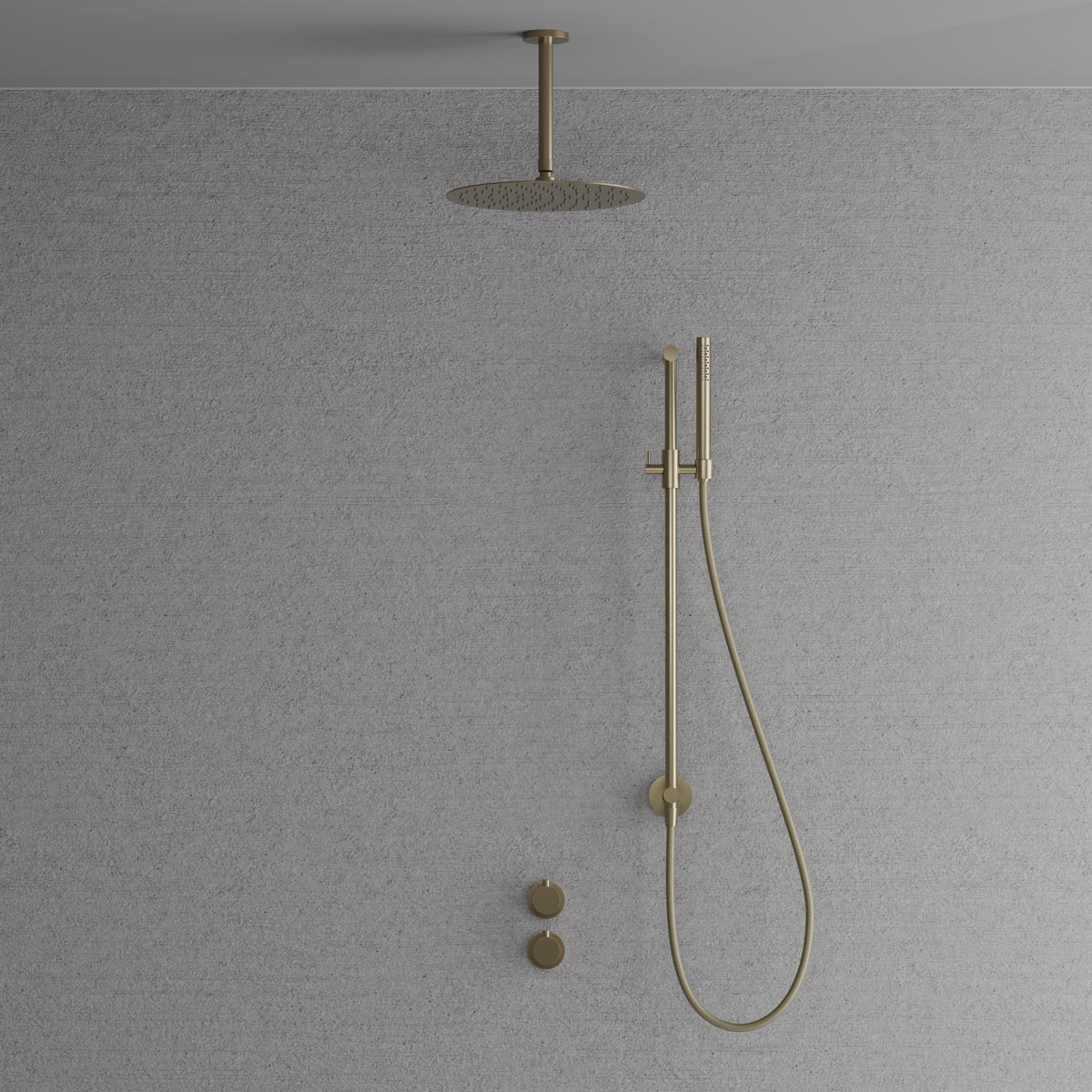 Systemet består av både takdusch och handdusch, vilket ger en komplett duschupplevelse med fokus på komfort och flexibilitet. Den tunna takmonterade duschsilen ger en mjuk och omslutande vattenbild, medan handduschen erbjuder ett jämnt och behagligt flöde för daglig användning.