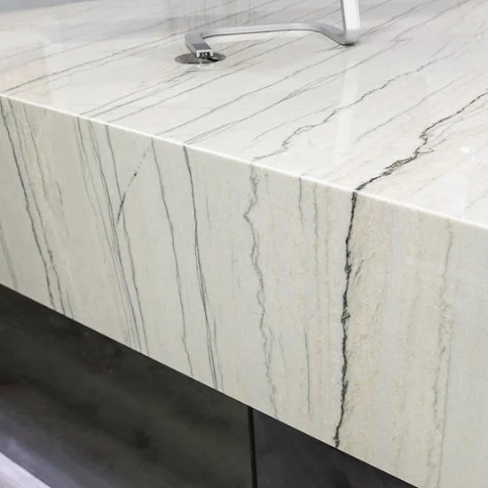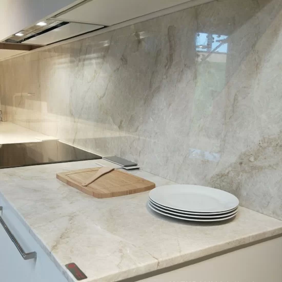 Kvartsitbänkskivor kombinerar skönheten hos natursten med hållbarheten hos kvarts. Det är extremt tåligt mot repor, fläckar och värme, vilket gör det till ett utmärkt materialval för kök och badrum. Dess naturliga mönster ger en unik och exklusiv look som varar föralltid. -