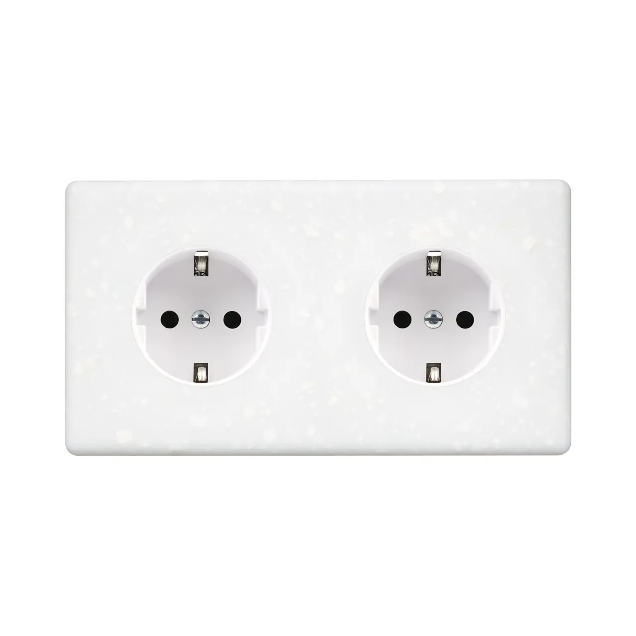 Hitera Vägguttagg dubbel i Terrazzo Vit är ett dubbelt Schuko vägguttag som på ett säkert sätt tillför funktion till ditt hem. Det kommer färdigt för montering och erbjuder en snabb och enkelt installation. Fronten monteras med dolda klips. Designen skapar en minimalistisk och stilren inredningsstil i ditt vardagsrum, sovrum eller kontor. Utförandet i Terrazzo Vit tillför en unik nyans av vit, krossad marmorsten. Modelecs Hitera Vägguttag är utrustat med två dedikerade jordade eluttag för att säkerställa en trygg och skyddad användning. Jordning är avgörande för att skydda mot elektriska störningar och för att säkerställa att eluttaget är korrekt jordat för maximal säkerhet.