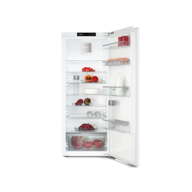 Tyska Miele är specialiserad på köksdesign och tillverkar högkvalitativa hushållsprodukter välkända för sin långa livslängd och exceptionella prestanda. Utöver innovativa funktioner är Mieles köksprodukter också estetiskt tilltalande och blir en snygg detalj i alla kök. Miele Integrerat kylskåp K 7437 D är ett högkvalitativt kylskåp för inbyggnad med elegant design. Kylen inkluderar en rymlig låda med justerbar fuktighet tack vare DailyFresh som behåller matens fräschör samtidigt som kylskåpets insida har generöst med plats för stora föremål. Automatik-funktionen DynaCool ger en jämn temperaturfördelning inuti hela kylskåpet, för optimal hållbarhet av dina livsmedel. Dessutom är dörrhyllorna diskmaskinsvänliga så att du slipper diska på egen hand. Kylskåpets FlexiLight2.0 möjliggör justering av glashyllebelysningen som går att anpassa efter eget behov. Upplev ett högkvalitativt kylskåp som garanterar utmärkt kylning av dina livsmedel och blir en stilsäker interiördetalj i ditt kök som gör jobbet!